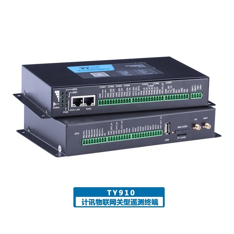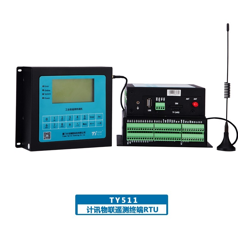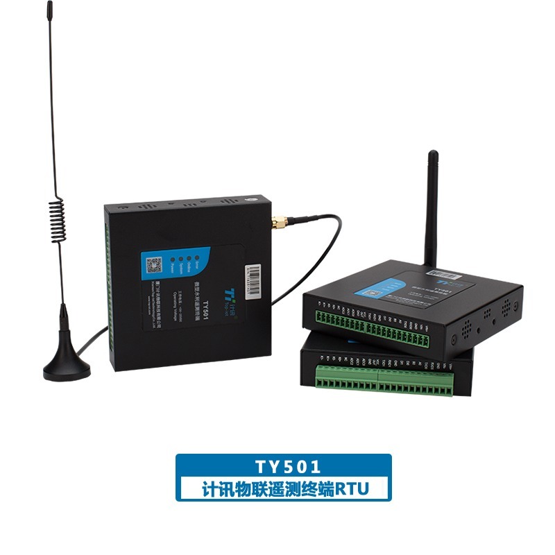 TY501,小体积低功耗遥测终端,2 个 RS232 接口(1 路做 debug 口)、1 个 RS485 接口(可扩展成 2 路),3 路模拟量输入接口(16 位 AD、支持 4-20mA 电流或 0-5V 电压信号),2 路开关量输入接口和 2 路开关量输出(可选),可定制 TTL 电平串口、2 路脉冲输入(可选)、2 路继电器输出(可选)兼容各种类型的流量计、水位计、水质分析仪、雨量计、气象要素传感器、工业串口摄像机等仪器,可支持市电或太阳能供电。